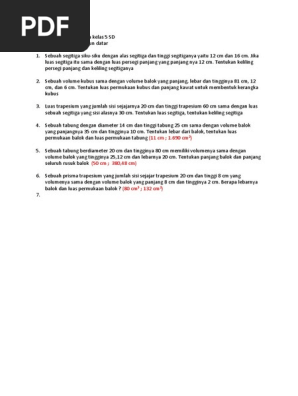 Soal Matematika Kelas 5 Sd Bab 5 Kubus Dan Balok Dan Kunci