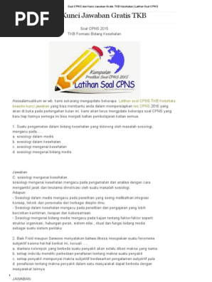 Soal Cpns Dan Kunci Jawaban Gratis Tkb Kesehatan Latihan