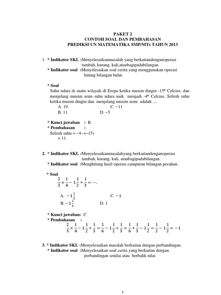 Pdf Soal Un Matematika Smp Dan Pembahasan Paket Etia Snsd