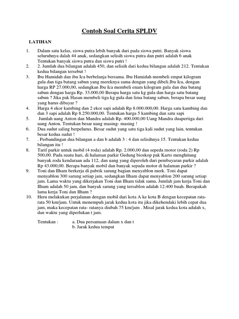 Doc Soal Cerita Sistem Persamaan Linear Dua Variabel Spldv
