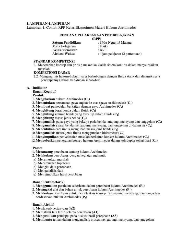 Contoh Rpp Kelas Eksperimen Materi Hukum Archimedes Pdf
