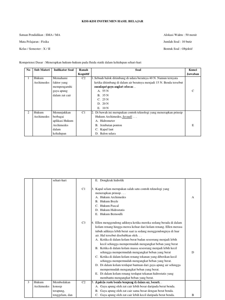 Kisi Kisi Soal Hukum Archimedes
