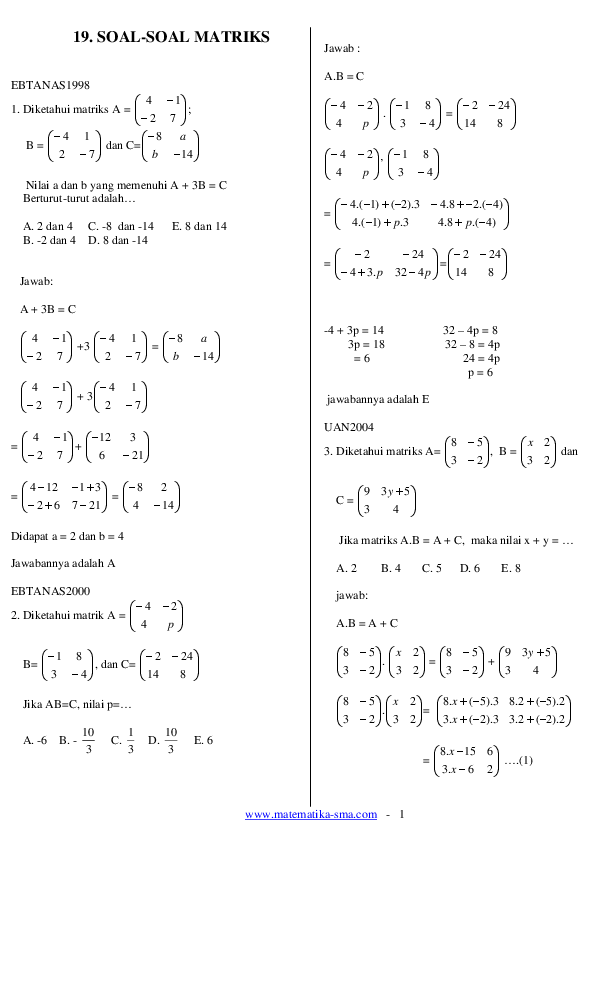 Pdf 19 Soal Soal Matriks Zawahar Islamy Academia Edu