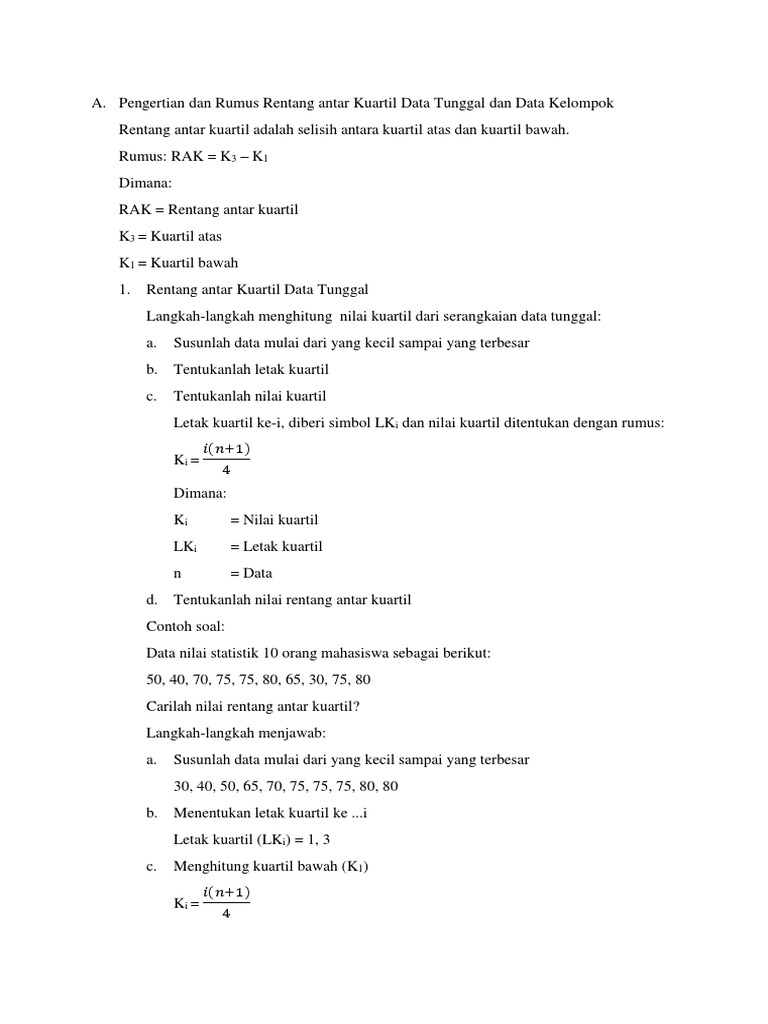 Pengertian Dan Rumus Antar Kuartil Data Tunggal Dan Data