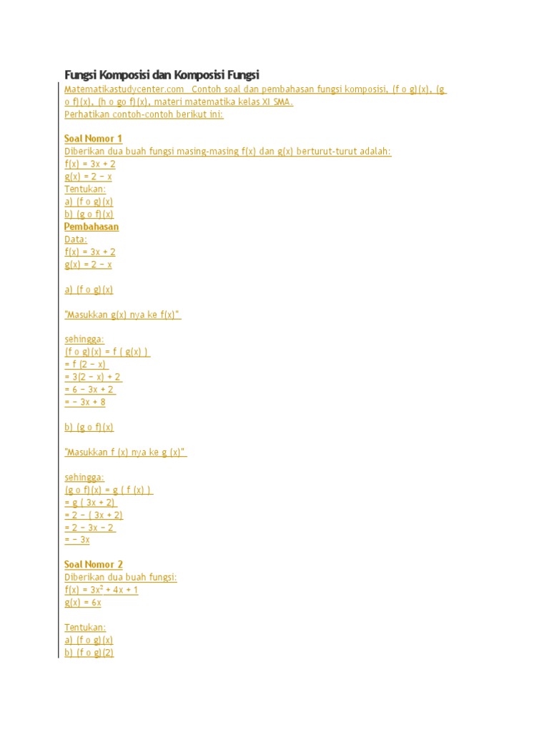 Contoh Soal Dan Pembahasan Tentang Fungsi Komposisi Dan