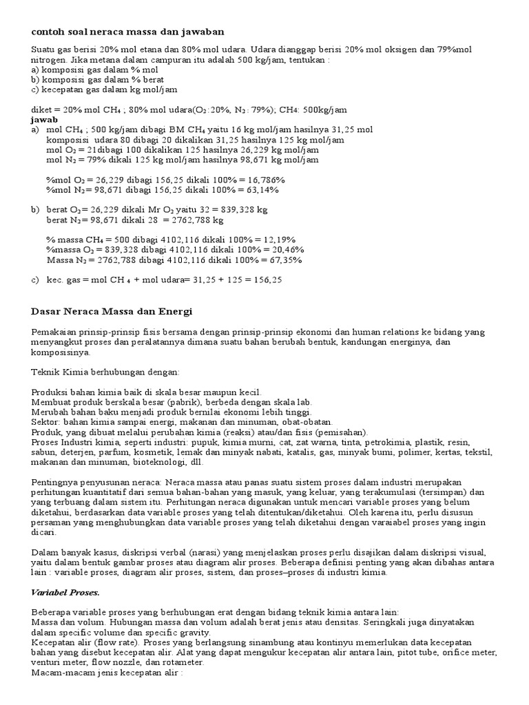 Atk Contoh Soal Neraca Massa Dan Jawaban Sdh Print Doc
