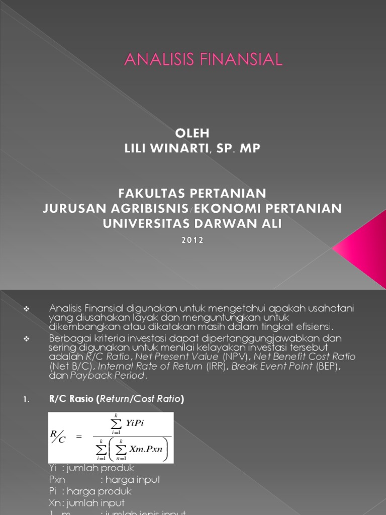 Cara Menghitung Npv Net Bc Gross Bc Irr Pp Bep Pr