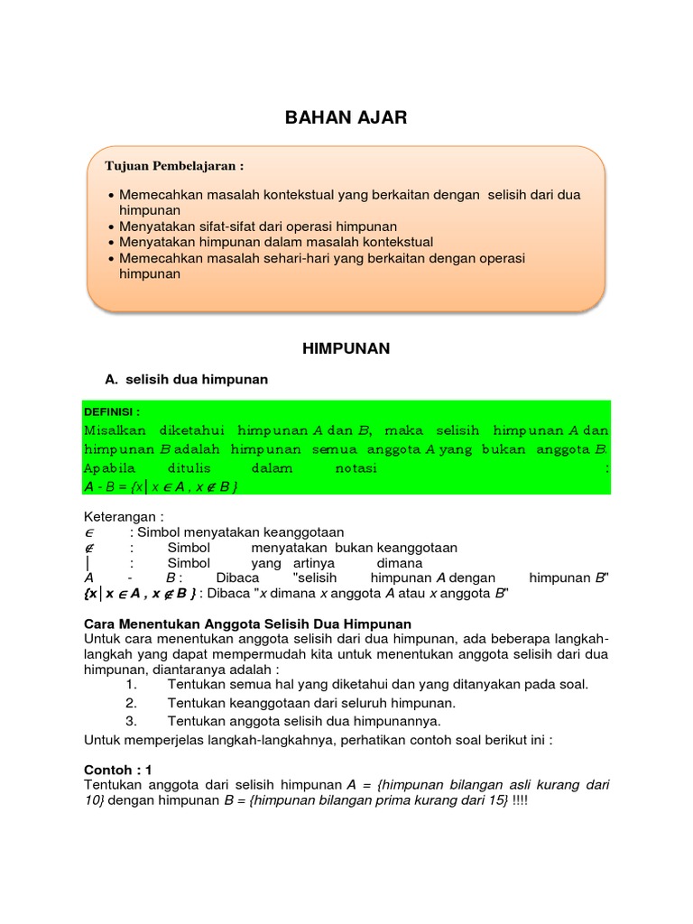 Contoh Soal Himpunan Dan Penyelesaiannya Beserta Jawabannya
