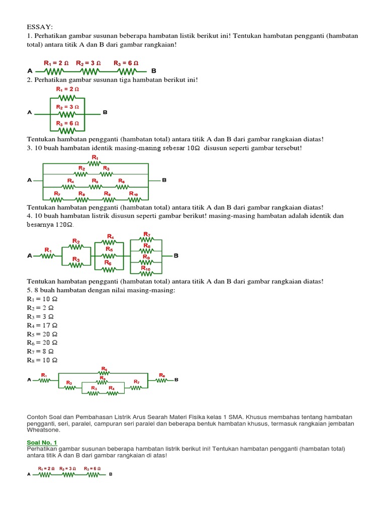 Contoh Soal Rangkaian Hambatan Listrik Matra Pendidikan