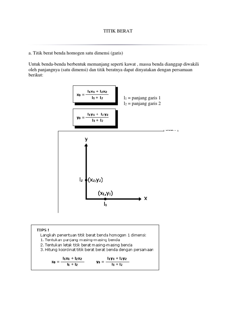 Titik berat benda homogen satu dimensi garis untuk benda benda berbentuk memanjang seperti kawat massa benda dianggap diwakili oleh panjangnya satu dimensi dan titik beratnya dapat dinyatakan dengan persamaan berikut. A 2 4010 400. X 1 5.