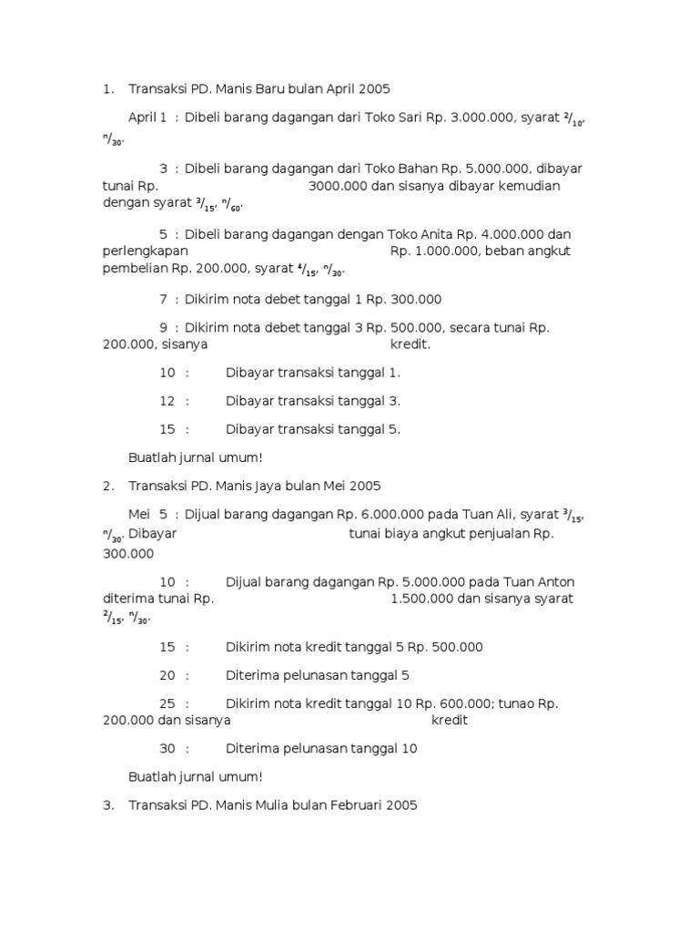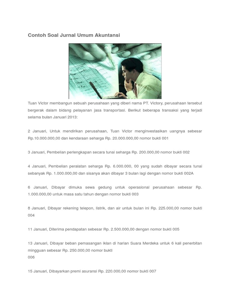 Contoh Soal Akuntansi Jurnal Umum 15 Transaksi