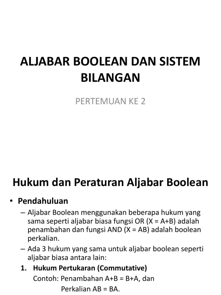Pertemuan Ke 2 Sistem Bilangan Aljabar Boolean