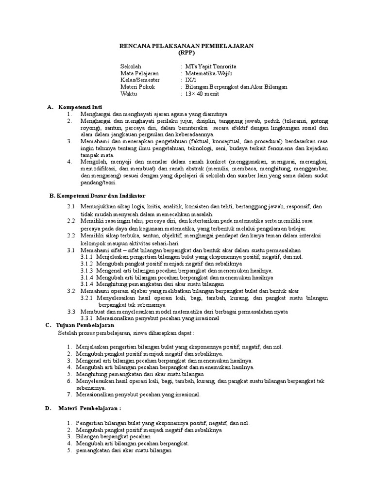 Rpp1 Bilangan Berpangkat Dan Akar Bilangan