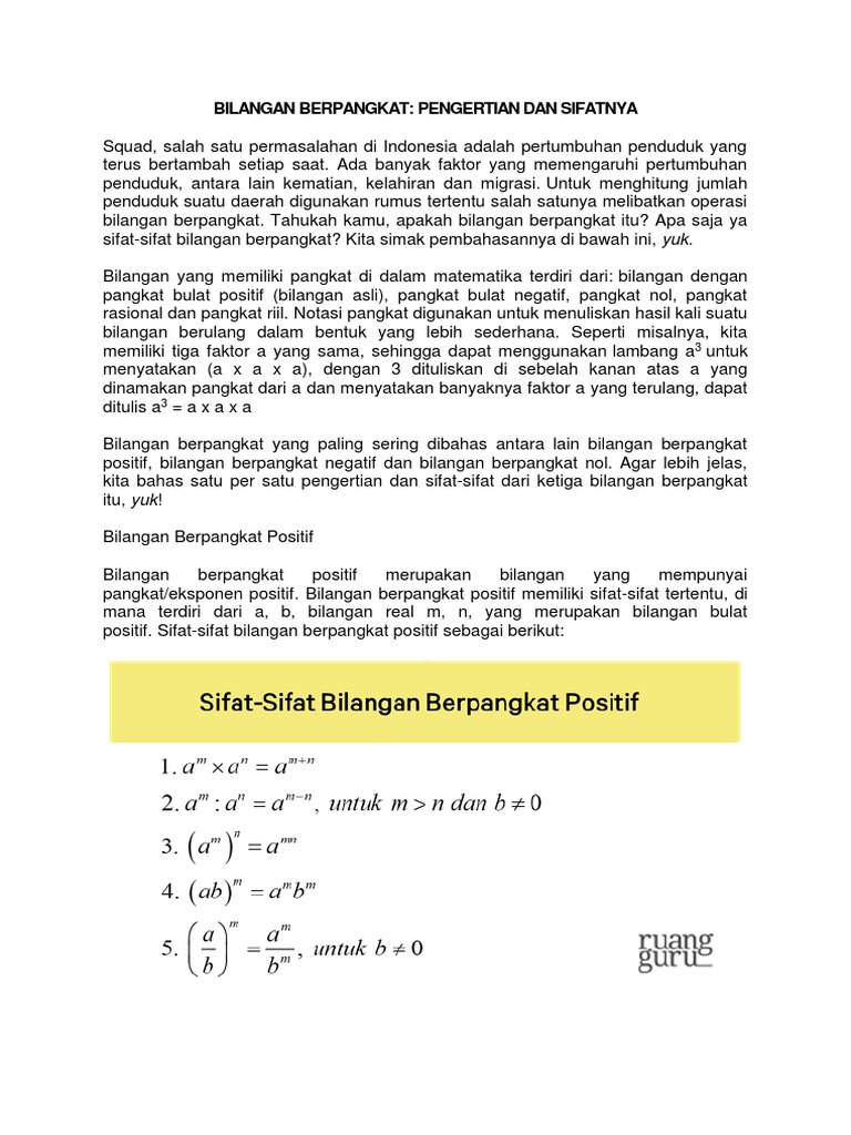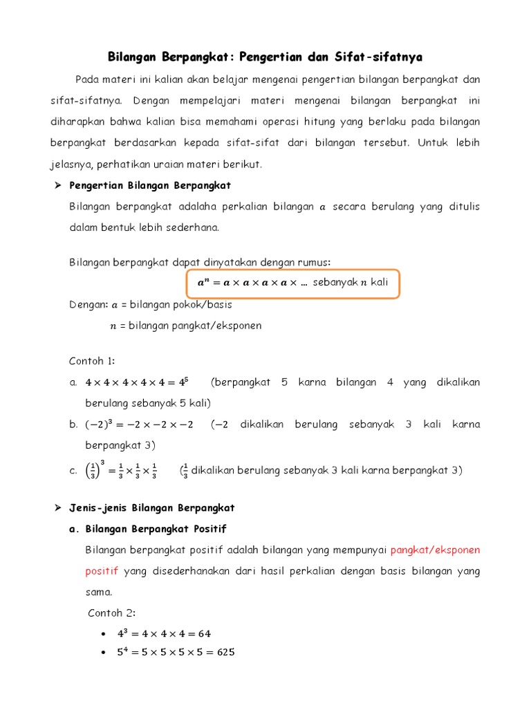 Bilangan Berpangkat Dan Bentuk Akar Pengertian Sifat