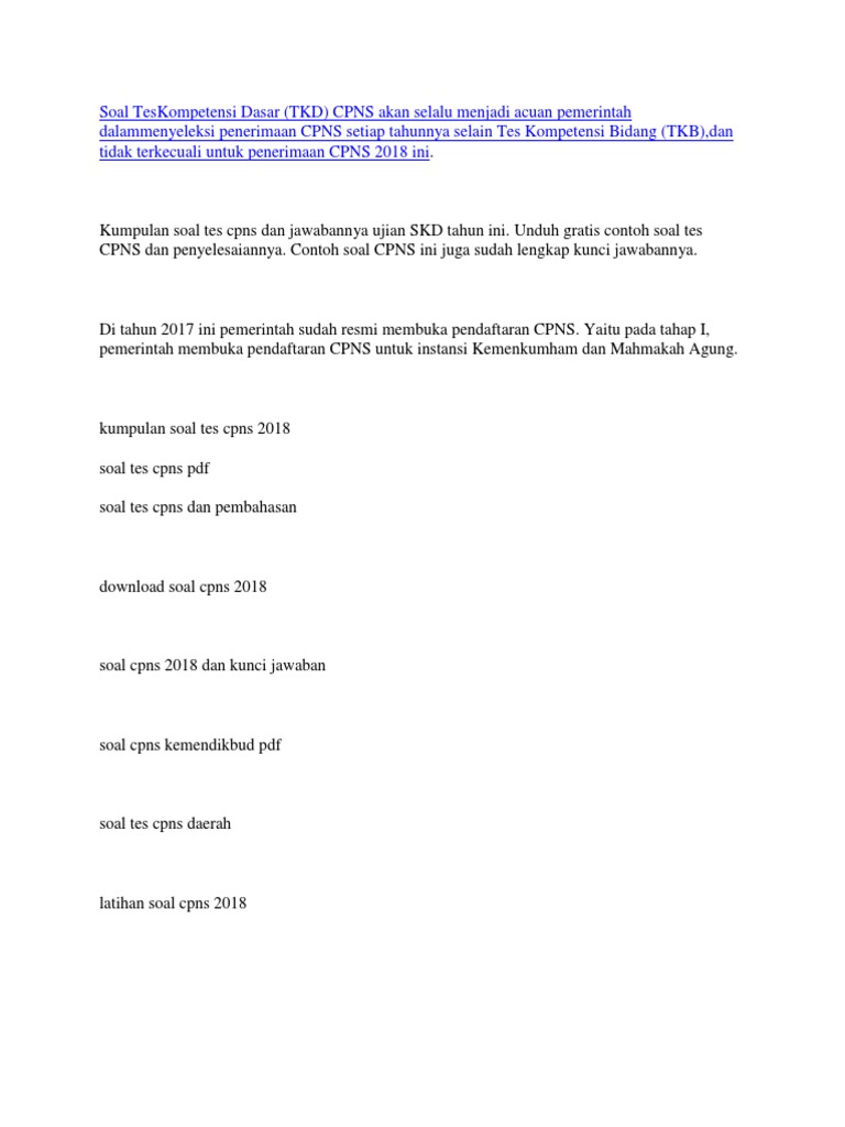 Contoh Soal Tkd Cpns Pdf Qwerty