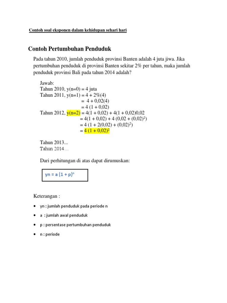 Contoh Soal Eksponen Dalam Kehidupan Sehari Hari