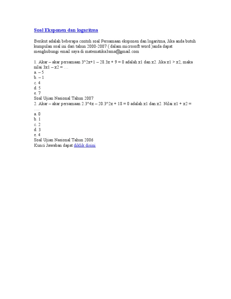 Soal Eksponen Dan Logaritma Diklik Disini