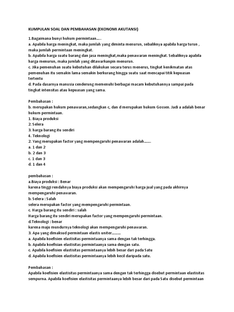 Soal Dan Jawaban Pokok Bahasan Permintaan Demand Dan