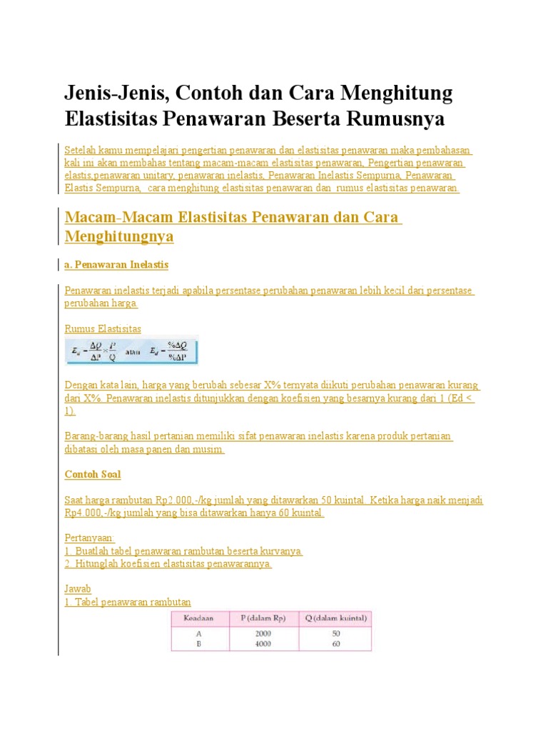 Jenis Jenis Contoh Dan Cara Menghitung Elastisitas