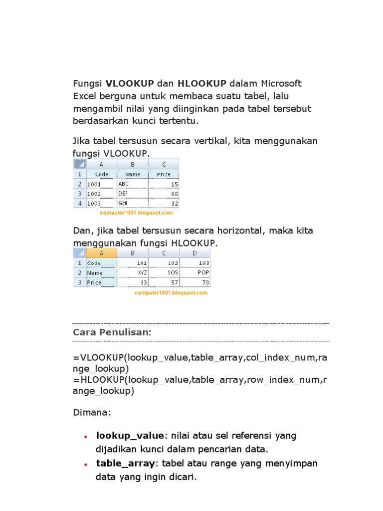 Contoh Dan Cara Penulisan Sintaks Vlookup Dan Hlookup Di