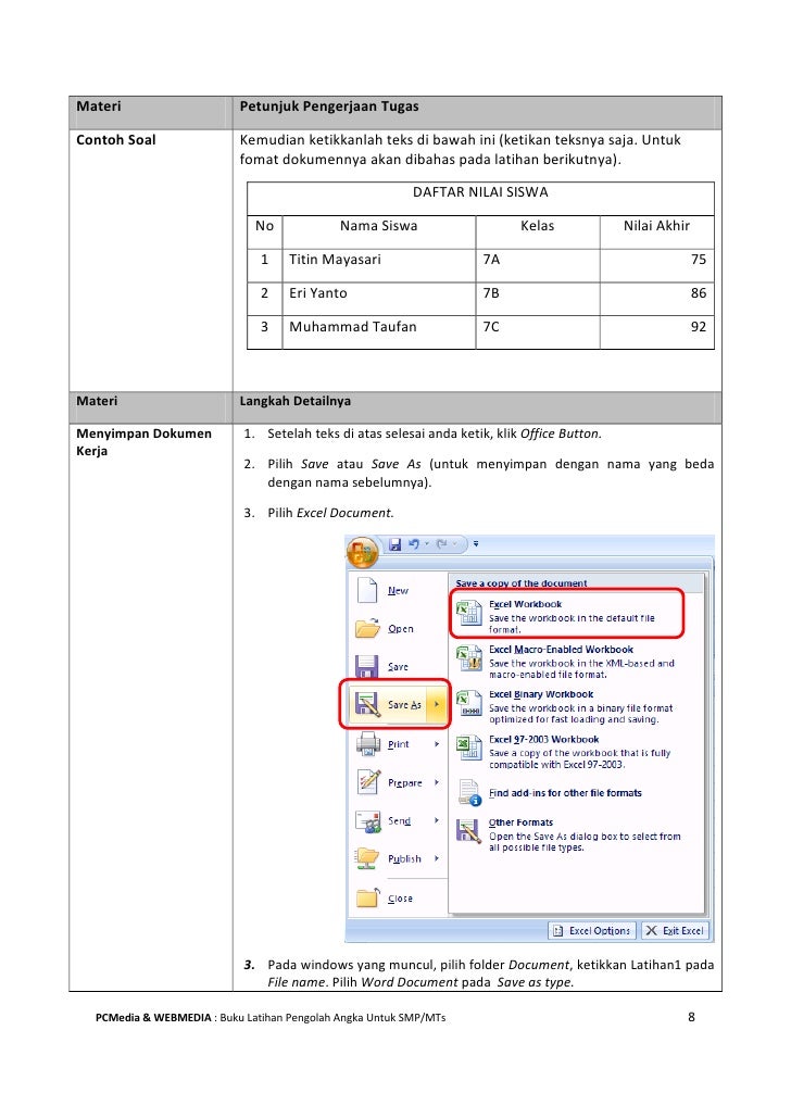 Kumpulan Latihan Praktik Microsoft Excel Modul Komputer