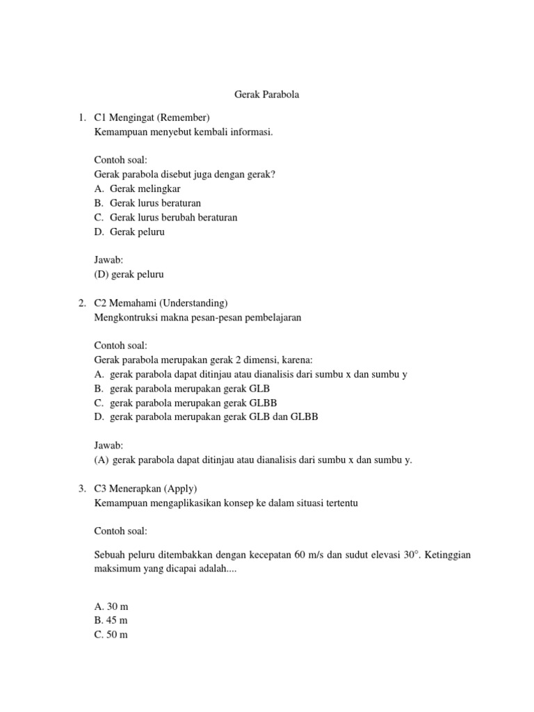 Contoh Soal Hots Fisika Pada Gerak Parabola Untuk Persiapan