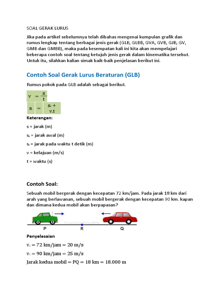 Contoh Soal Gerak Lurus Beraturan Glb Rumus Dan