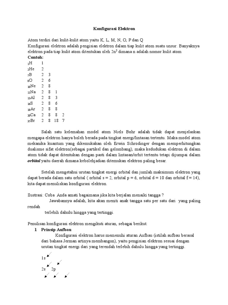Konfigurasi Elektron Wikipedia Bahasa Indonesia