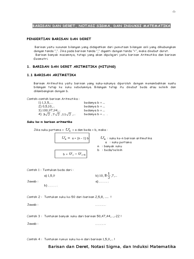 Soal Soal Notasi Sigma Barisan Deret Dan Induksi Matematika