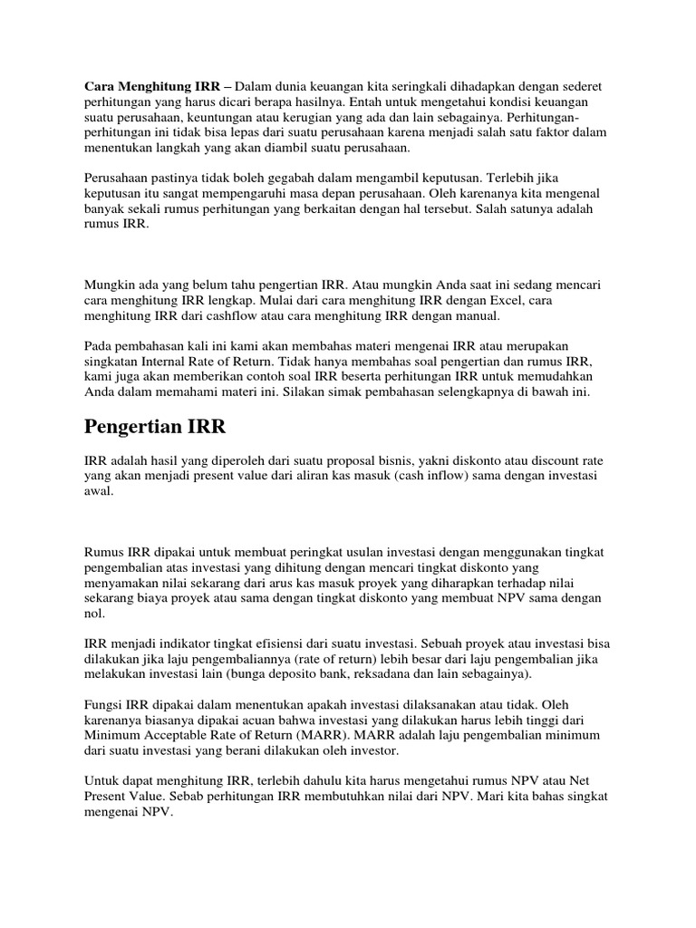 Cara Menghitung Irr Beserta Rumus Dan Contoh Soal