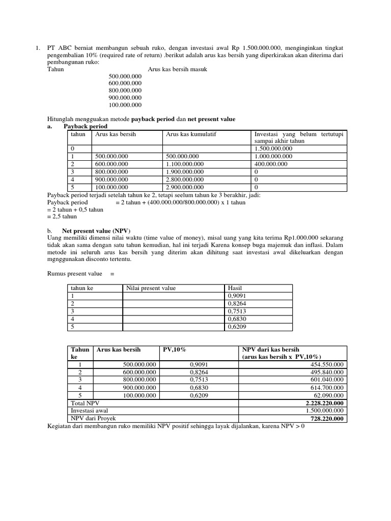 Contoh Soal Payback Period Investasi Dengan Rumus Dan Analisanya