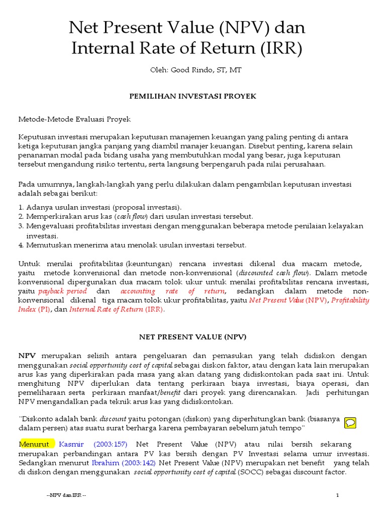 Doc Matematika Bisnis Dan Ekonomi Materi Npv Vs Irr Dan