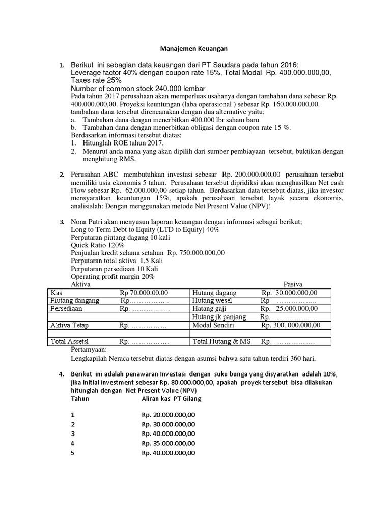 Soal Ujian Ut Manajemen Ekma4213 Manajemen Keuangan