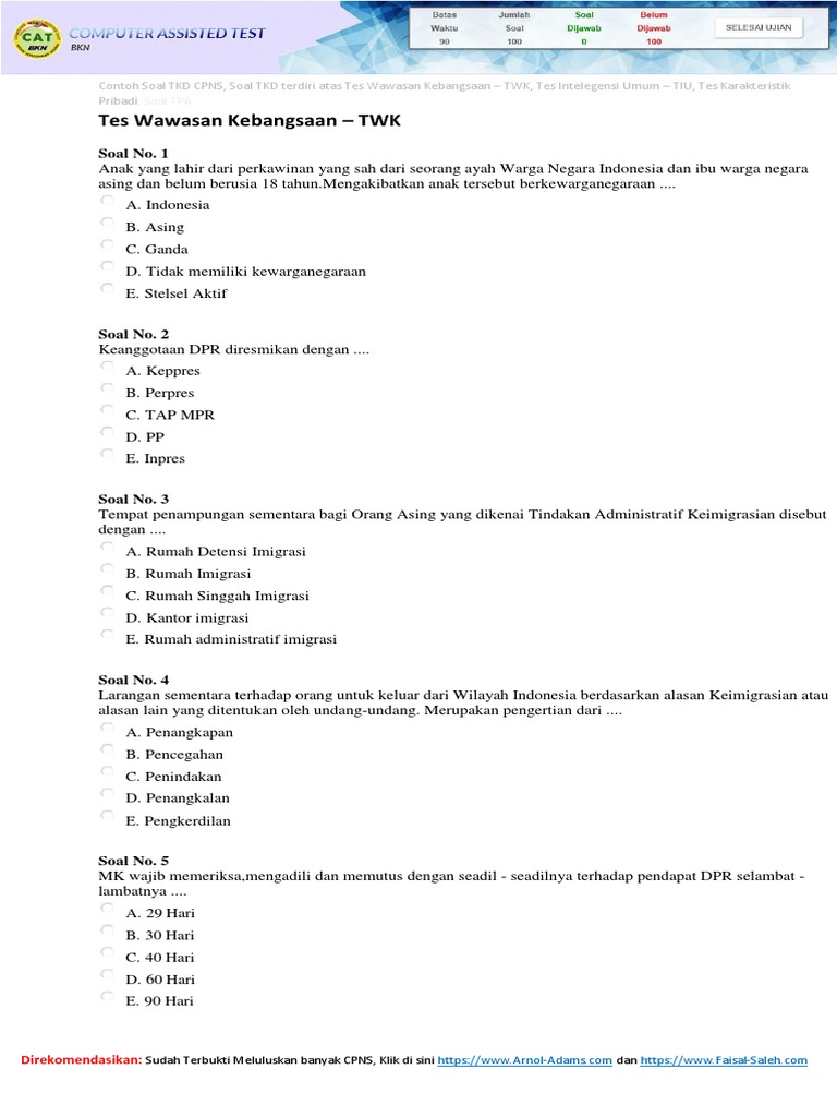 100 Pola Soal Cpns Tes Kompetensi Dasar Tkd Dan