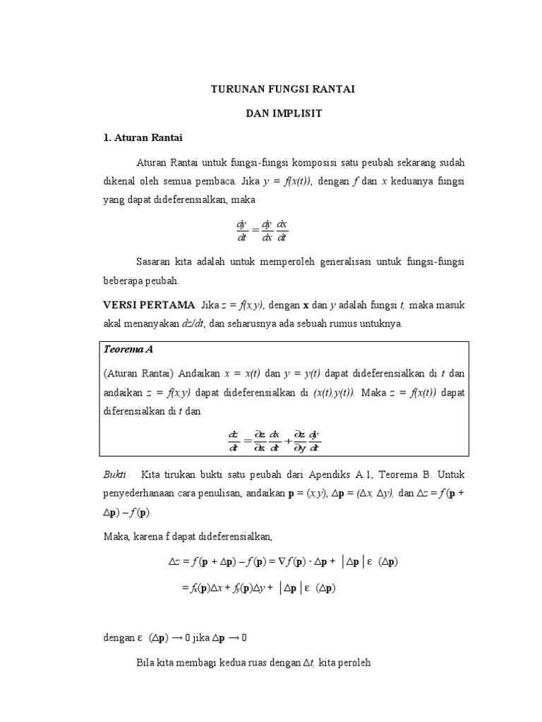 Aturan Rantai Turunan Fungsi Implisit Dan Turunan Total