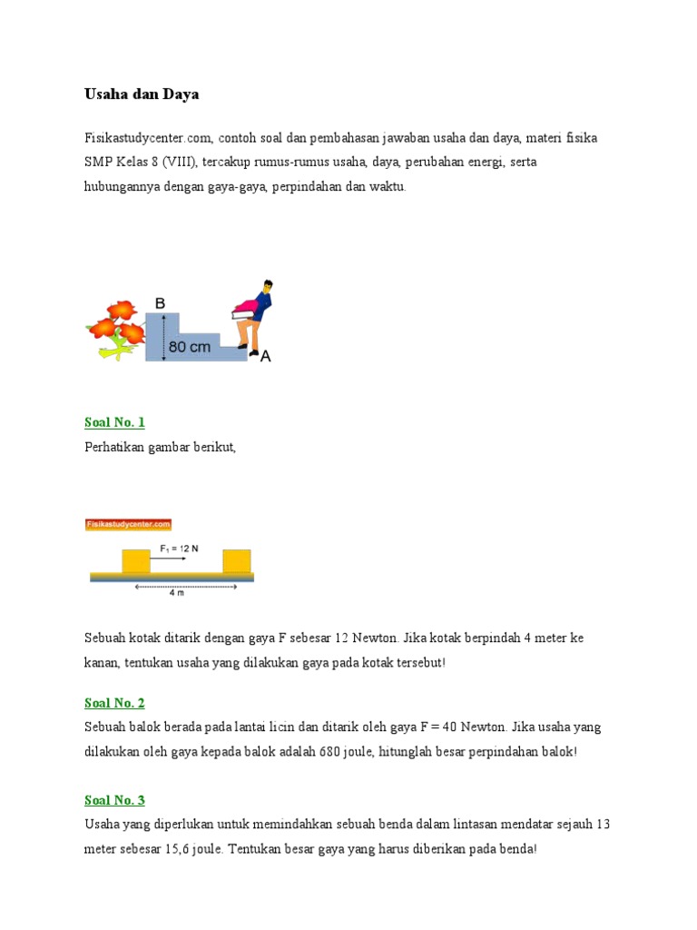 Rumus Usaha Dan Contoh Soal Dengan Penyelesaiannya Smp