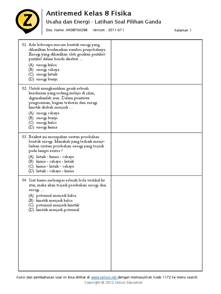 Soal Latihan Usaha Dan Energi Kelas 8 Pilihan Ganda Dan Esay
