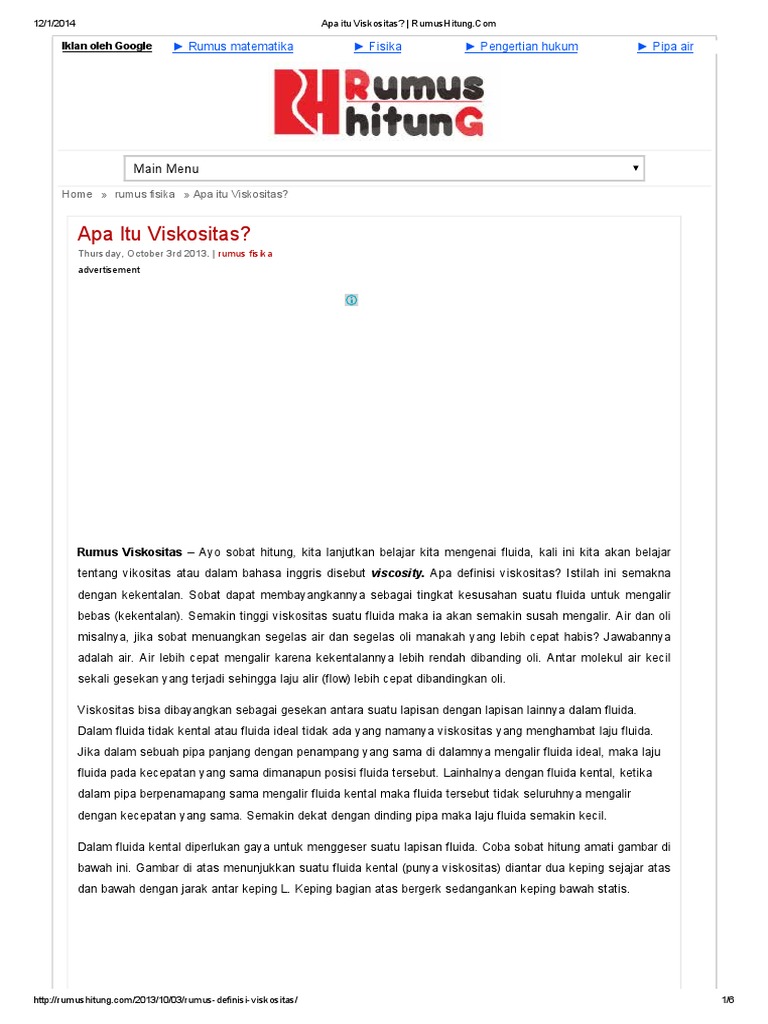Apa Itu Viskositas Rumushitung