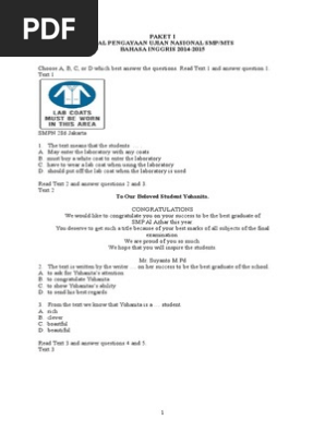 Contoh Soal Un Bahasa Inggris Smp Paket 2 Pdf Document