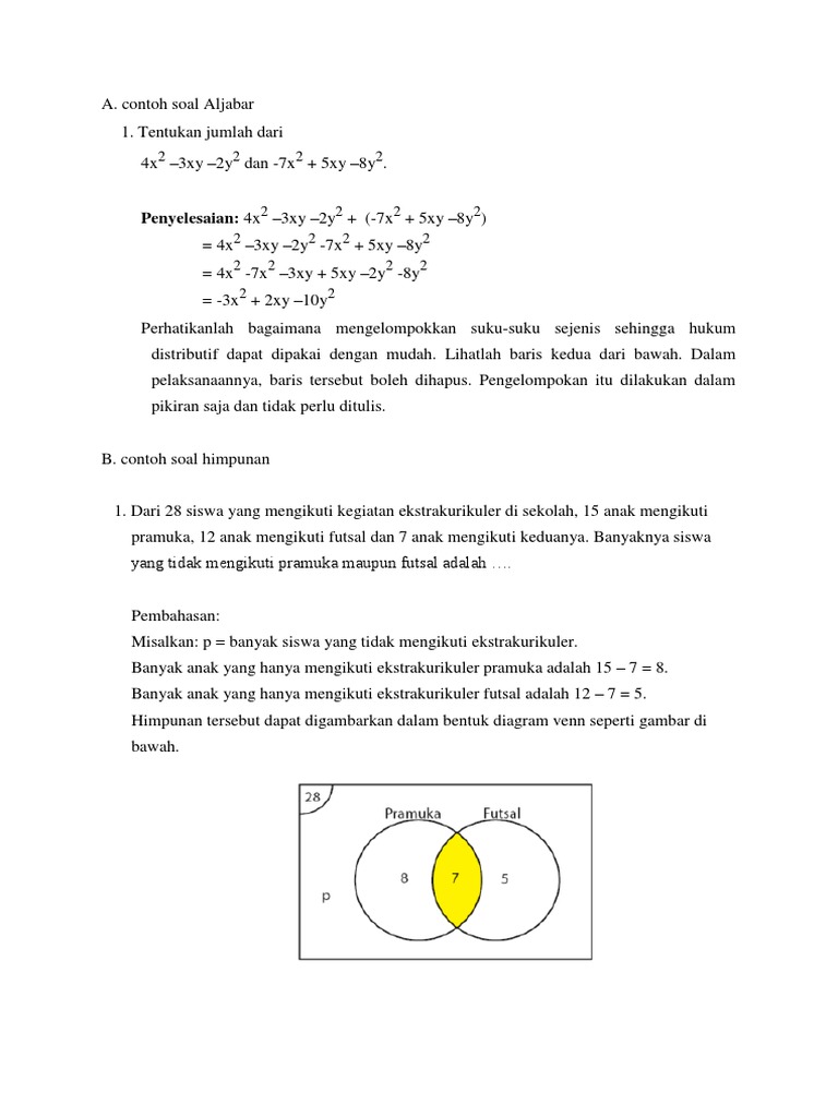 Contoh Soal Himpunan. Kumpulan contoh soal himpunan matematika dan pembahasannya beserta penyelesaian jawabannya. Postingan ini membahas contoh soal himpunan dan pembahasannya atau penyelesaiannya.
