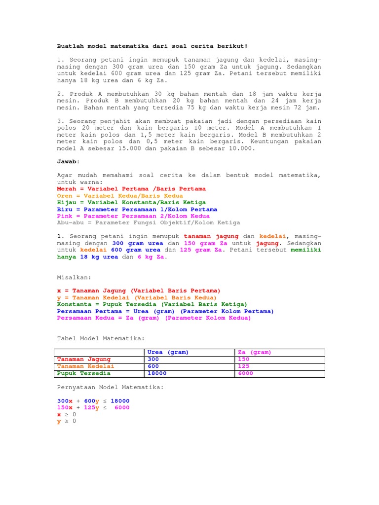 Contoh Soal Program Linear Dan Jawabannya Brainly