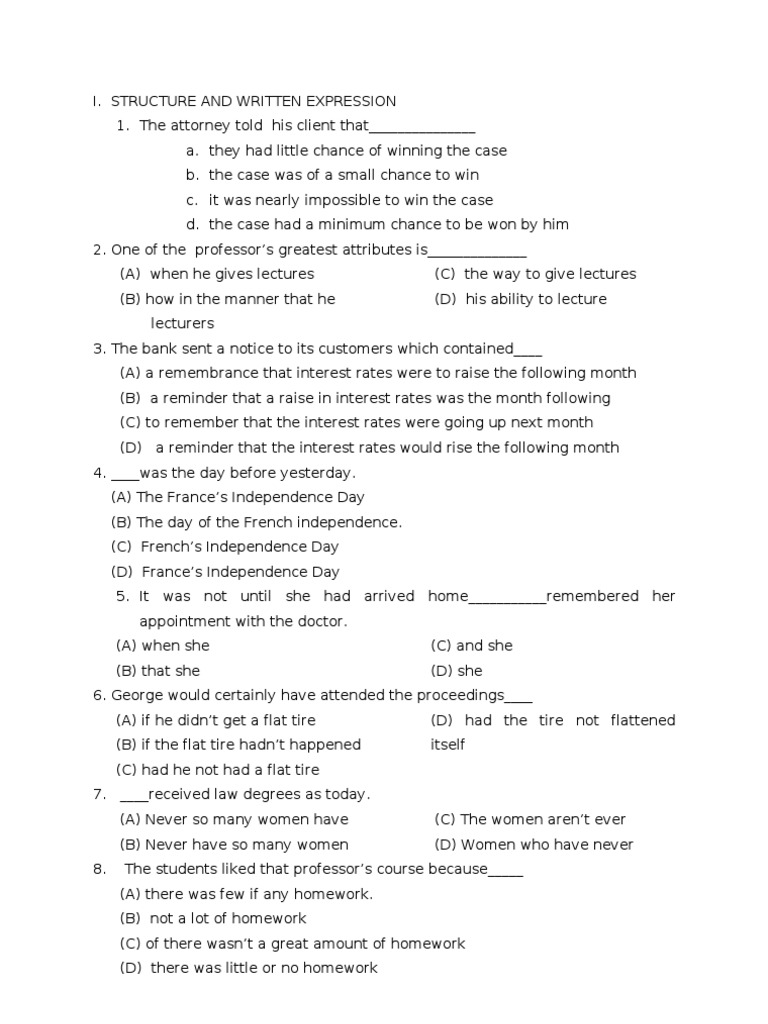 Secara internasional, kita harus menggunakan toefl ibt® agar bisa diakui. Demikian pembahasan tentang soal toefl conjunction berikut contoh soal dan latihannya. Structure & written expression section. Untuk memenuhi kebutuhan ini maka melalui tulisan ini kami akan membahas soal toefl structure, jawaban dan pembahasan. Jika kalian akan mengikuti test toefl dalam waktu dekat ini maka tidak salah jika kalian membaca artikel ini sampai tuntas sebagai bahan referensi. Dan sekarang masuk kedalam pokok materi yaitu contoh soal dan pembahasan toefl ibt.