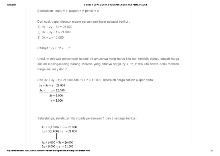 Contoh Soal Program Linear Dan Jawabannya Singkat