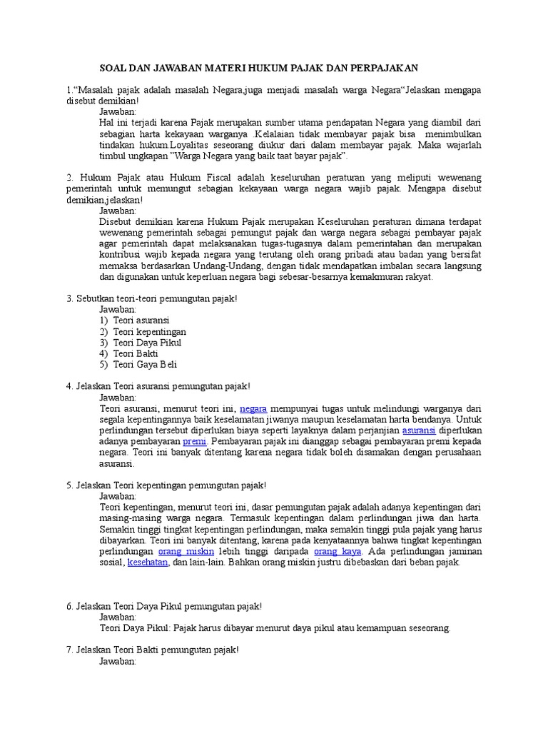 Latihan soal (essay/uraian) bab hukum pajak.