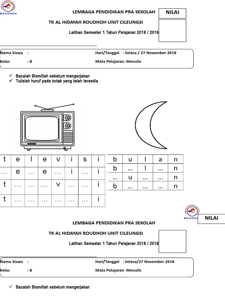 Terlengkap - Soal Bahasa Indonesia Tk B Semester 2