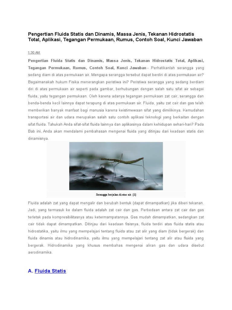 Mencakup debit, persamaan kontinuitas, hukum bernoulli dan toricelli. Massa jenis helium sebesar dan massa jenis udara sebesar. Hitunglah besar tekan yang diberikan dani pada lantai ketika ia berdiri dengan dua kaki dan ketika ia berdiri dengan satu kaki? Fluida merupakan kemampuan suatu zat untuk dapat mengalir (zat alir) biasa nya wujud zat berupa zat cair. Sebuah arloji tertulis water resist 5 bar. Fluida tidak mengalir biasa disebut fluida statis.