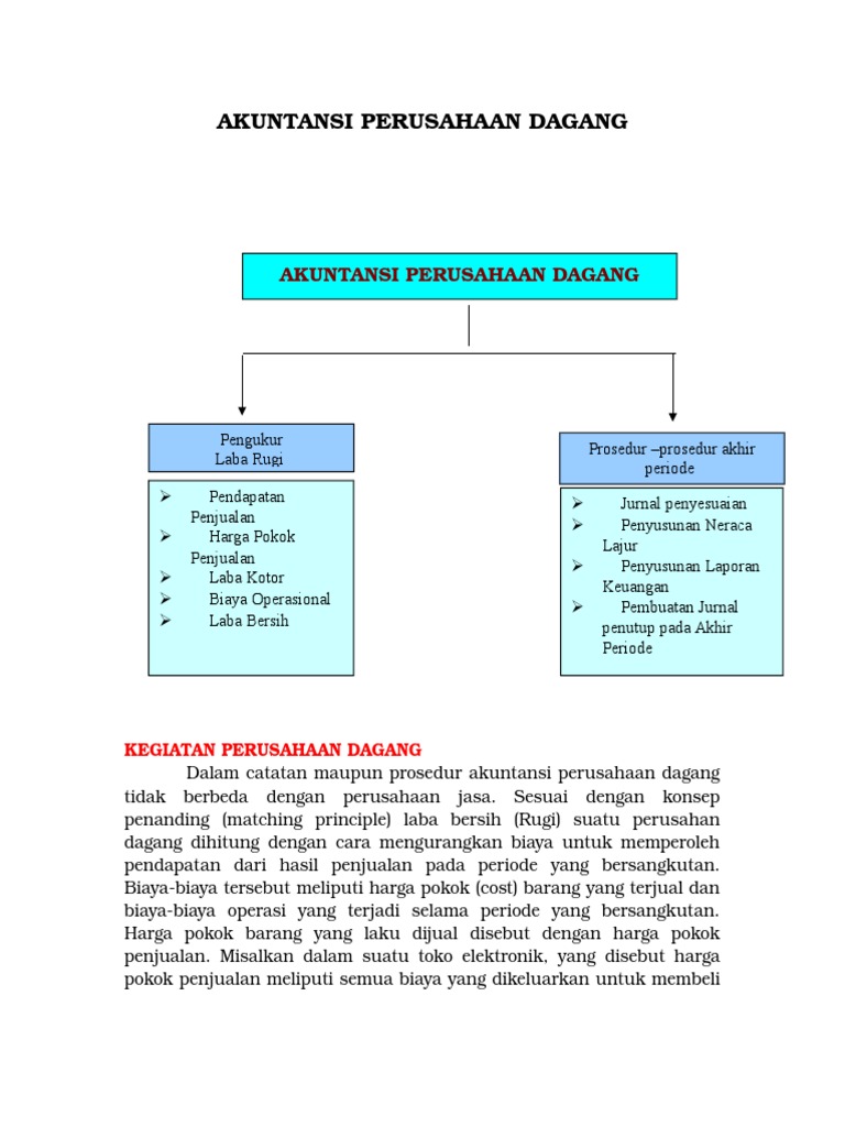 Perusahaan dagang merupakan suatu kegiatan usahanya melakukan suatu pembelian barang untuk dijual kembali tanpa adanya proses produksi (mengolah/mengubah bentuk).