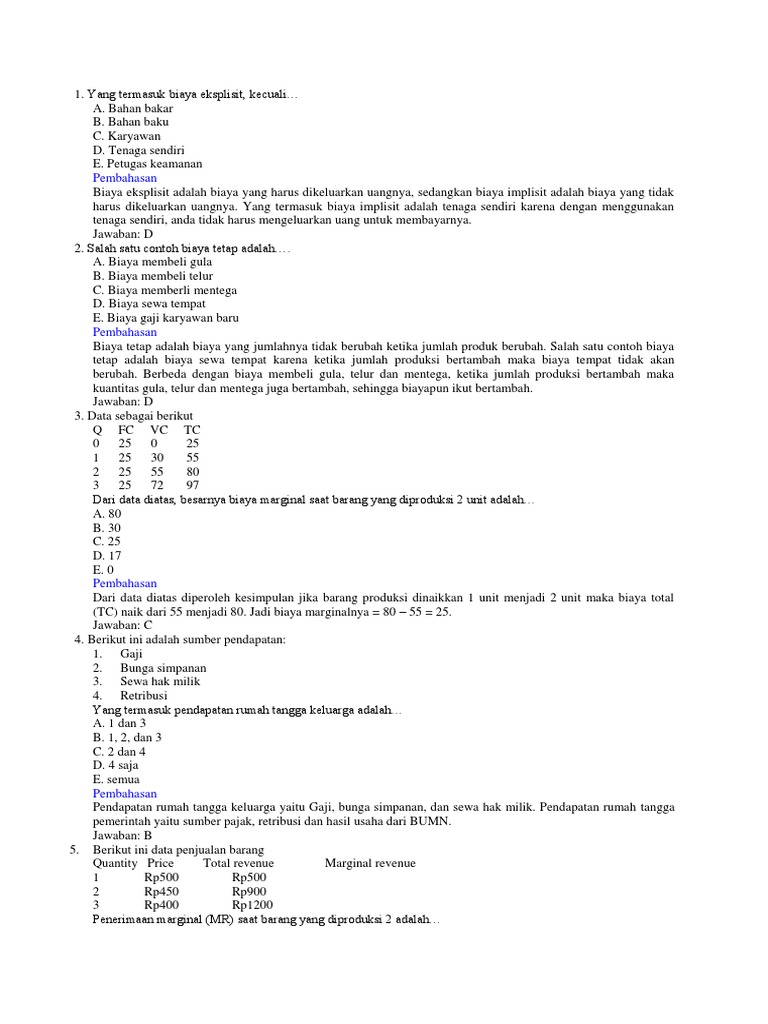 Kumpulan Soal - Contoh Soal Biaya Produksi