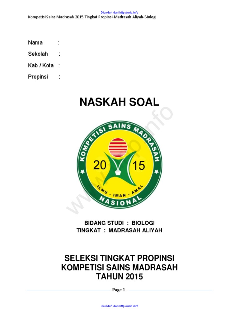 Soal Olimpiade Biologi Sma Dan Pembahasannya Pdf. Un, uas, soal olimpiade biologi 2009 tahap i. By guru arrasyidposted on february 19, 2020july 5, 2020.