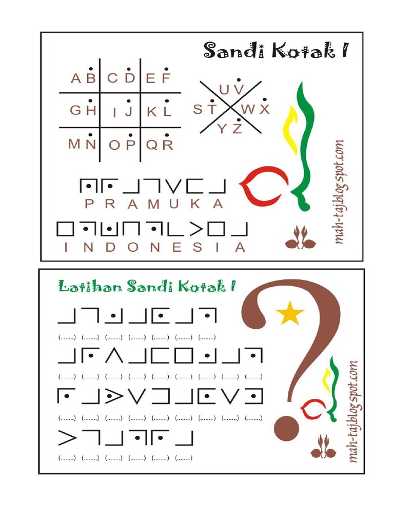 Sandi Kotak 1 2 Dan Sandi Morse Docx from imgv2-2-f.scribdassets.com Dalam pramuka kita kita mengenak yang namanya sandi. Sandi kotak 1,2, & 3. Merupakan kombinasi dari sandi kotak 1 dengan sandi kotak 2. Saking mudahnya sandi kotak kerap, bersama sandi angka dan sandi and , sudah diajarkan dan diujikan kepada anggota pramuka siaga. Kata sandi berasal dari bahasa sanskerta, yang artinya rahasia.